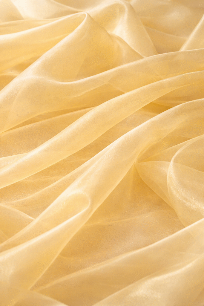 Traditionally, organza was made from silk, which gave it its soft sheen and luxurious feel. Today, it can also be made from synthetic fibers such as polyester, nylon, or blends, which offer increased durability, easier care, and affordability.